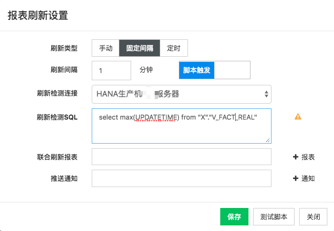 间隔"N"分钟刷新,也可配置脚本检查,数据有更新,触发刷新
